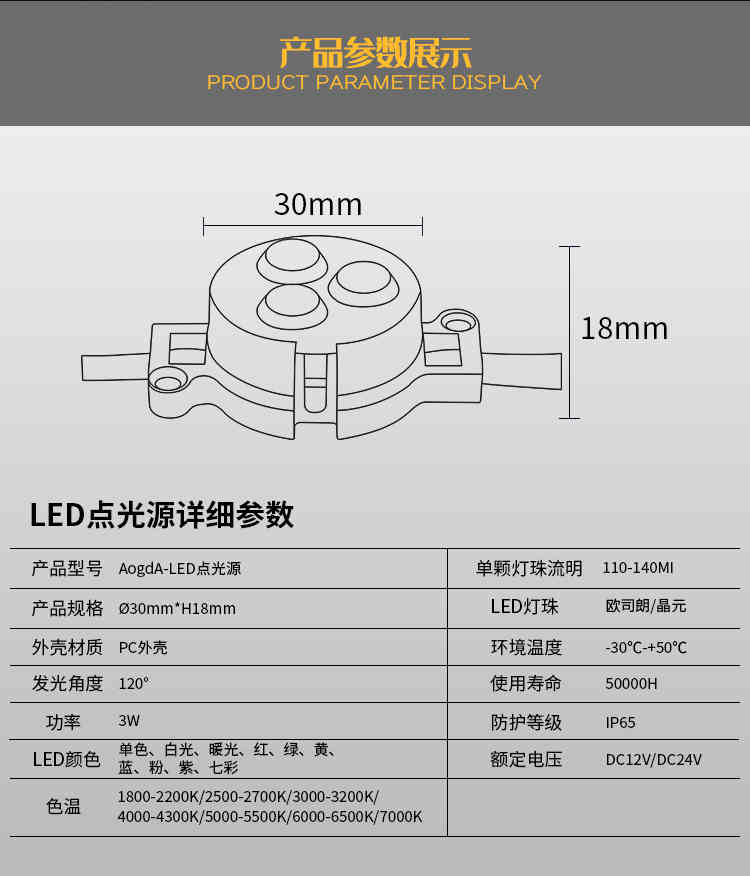 產(chǎn)品顏色:正白;暖白;紅光;黃光;藍(lán)光;綠光;紫光;RGB七彩;